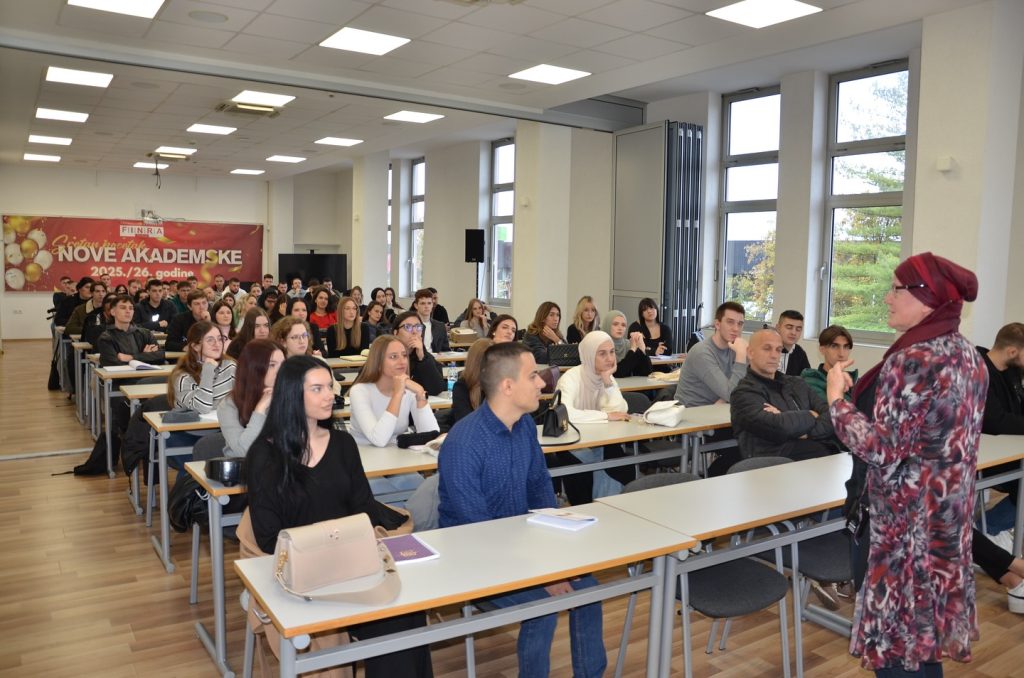 Danas su studenti prve godine imali uvodno predavanje iz Engleskog jezika kod prof.dr.Almase Mulalić. Ovaj predmet je zajednički na svim studijskim programima dodiplomskog studija.