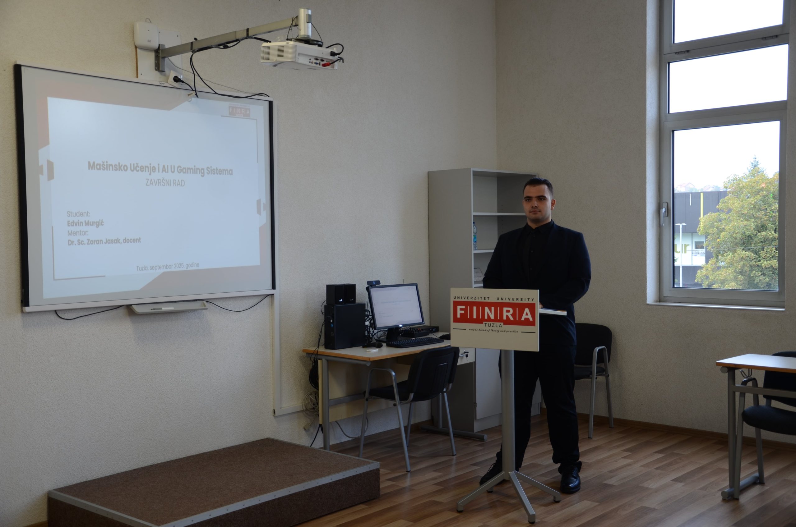Kandidat Edvin Murgić odbranio je završni rad na temu „Mašinsko učenje i AI u gaming sistemima“ pod mentorstvom doc.dr. Zorana Jasaka.
