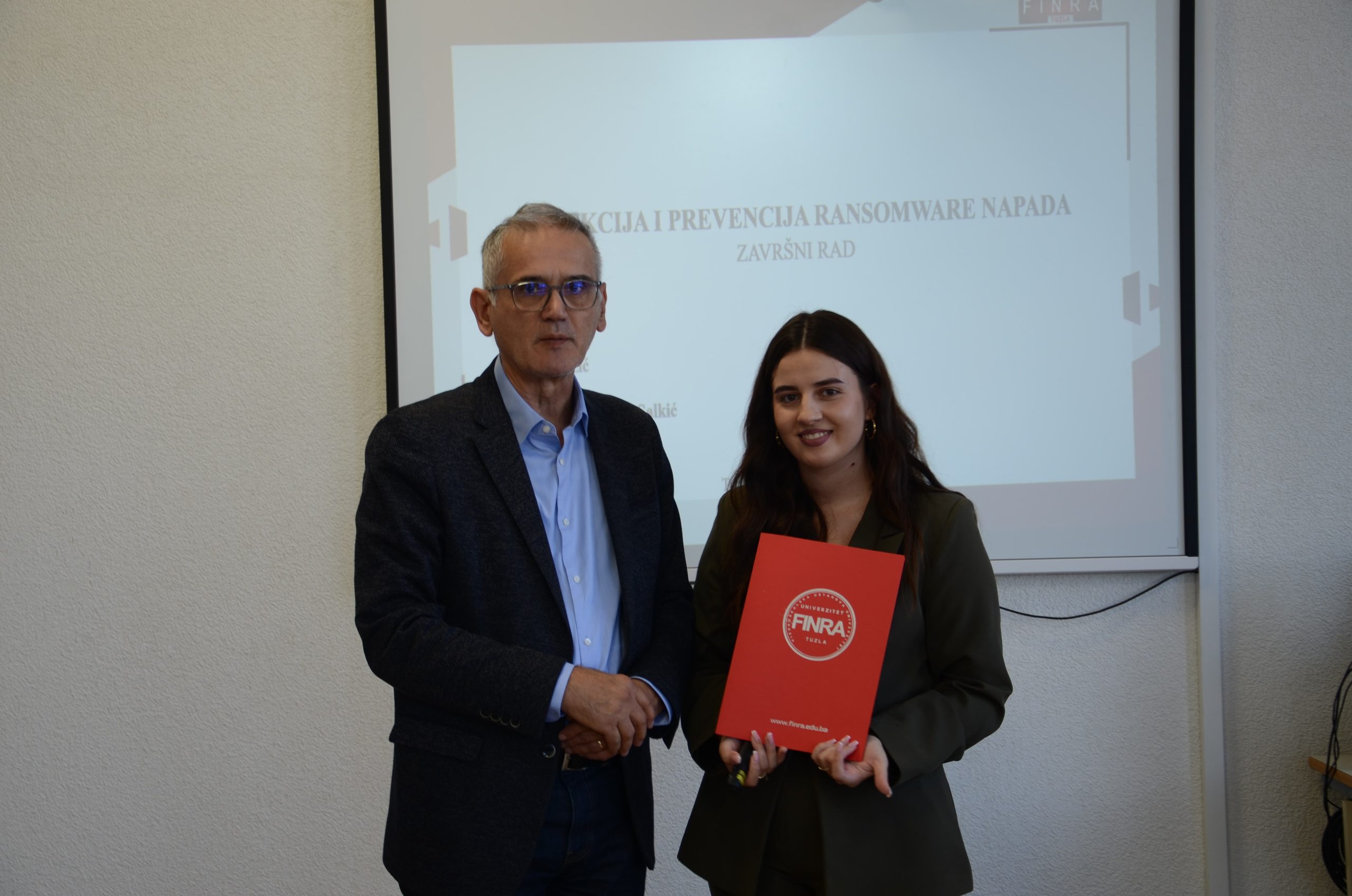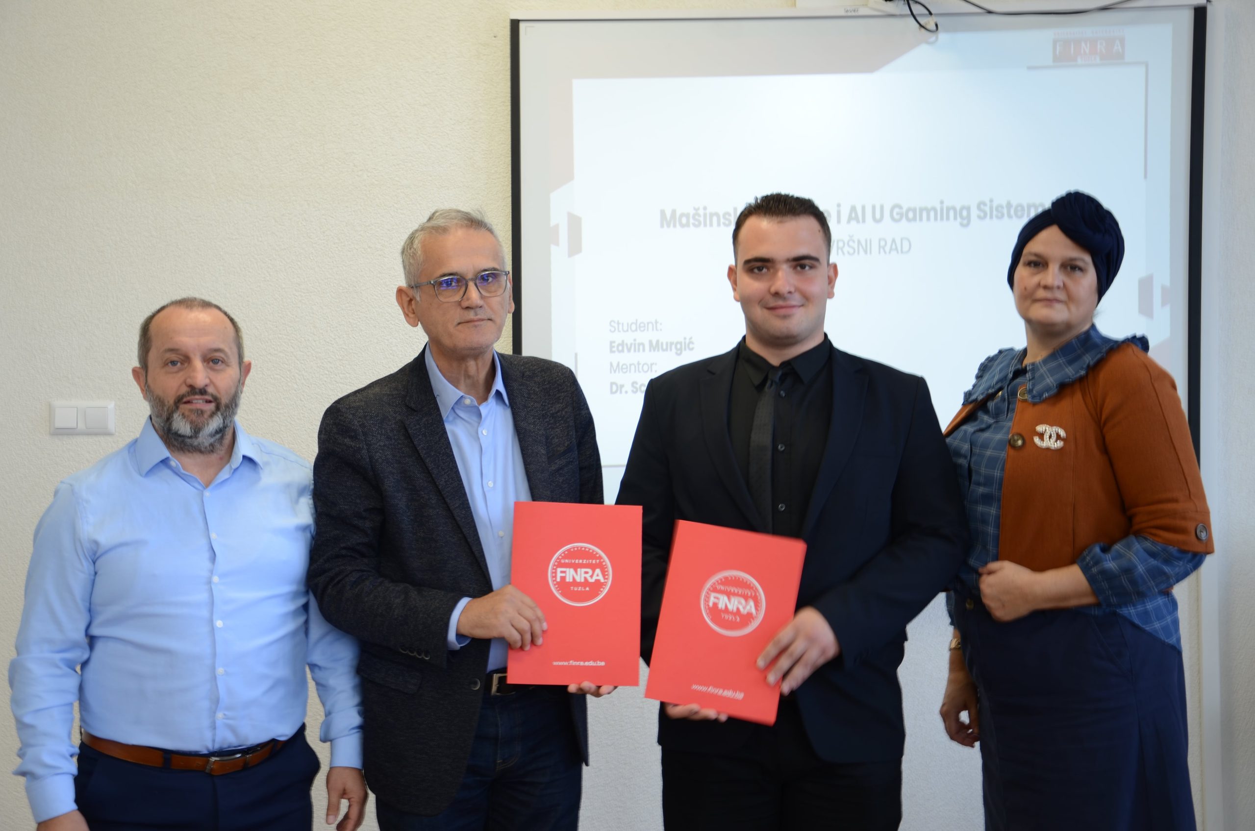 Danas, 25.09.2025. godine, na Univerzitetu FINRA Tuzla održana je javna odbrana završnih radova pet kandidata generacije studenata upisanih akademske 2021/22. godine, i to: Anise Redžić, Arabele Al Salamat, Edvina Murgića, Muhameda Alića i Azre Gopo.