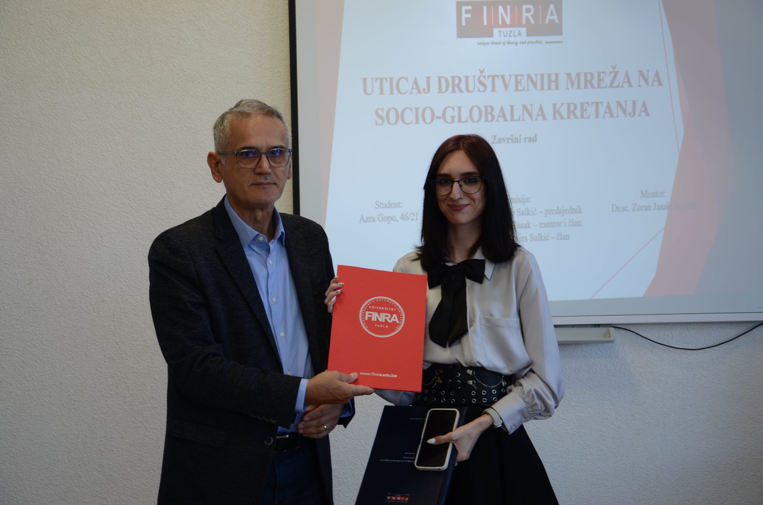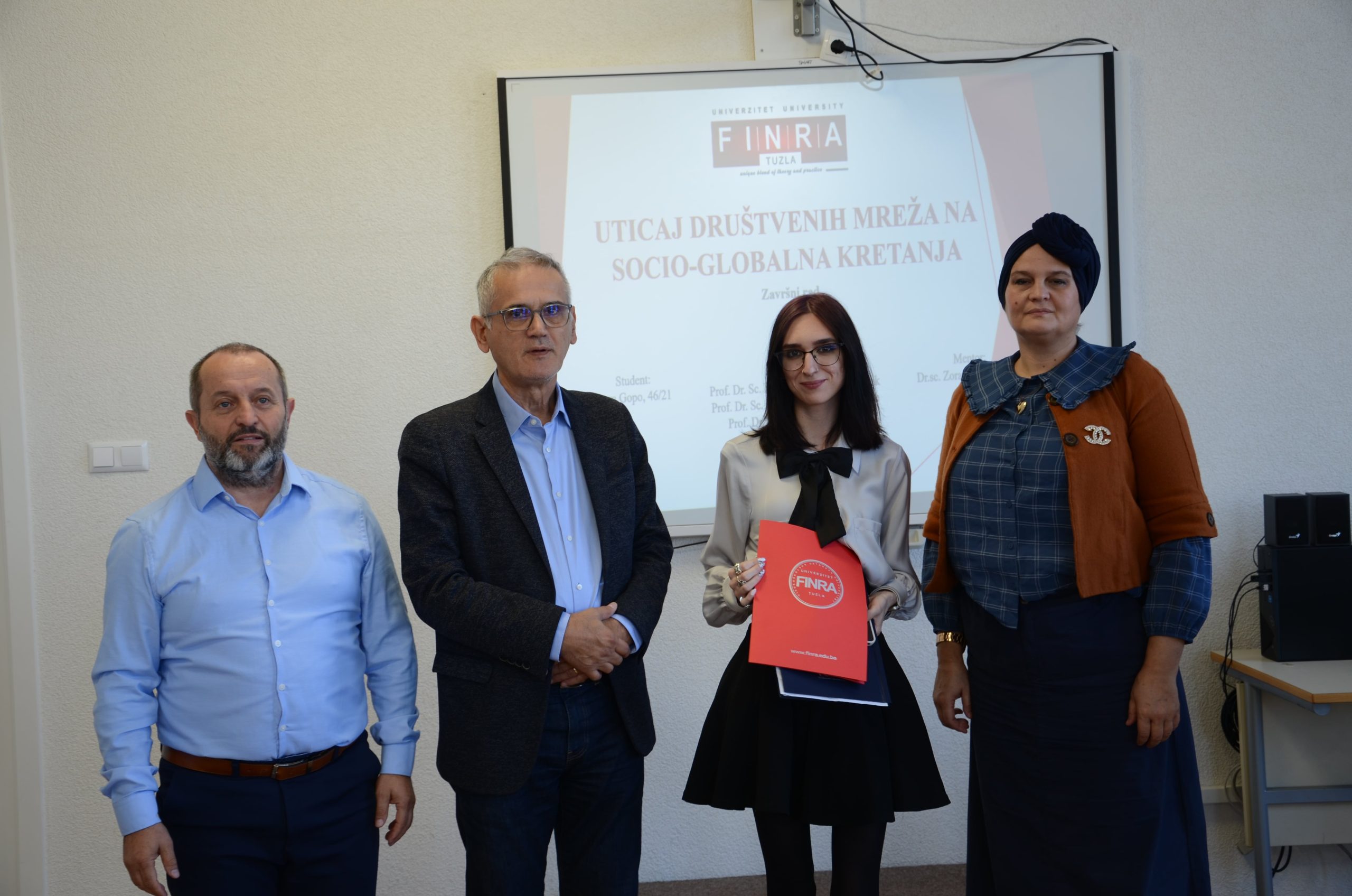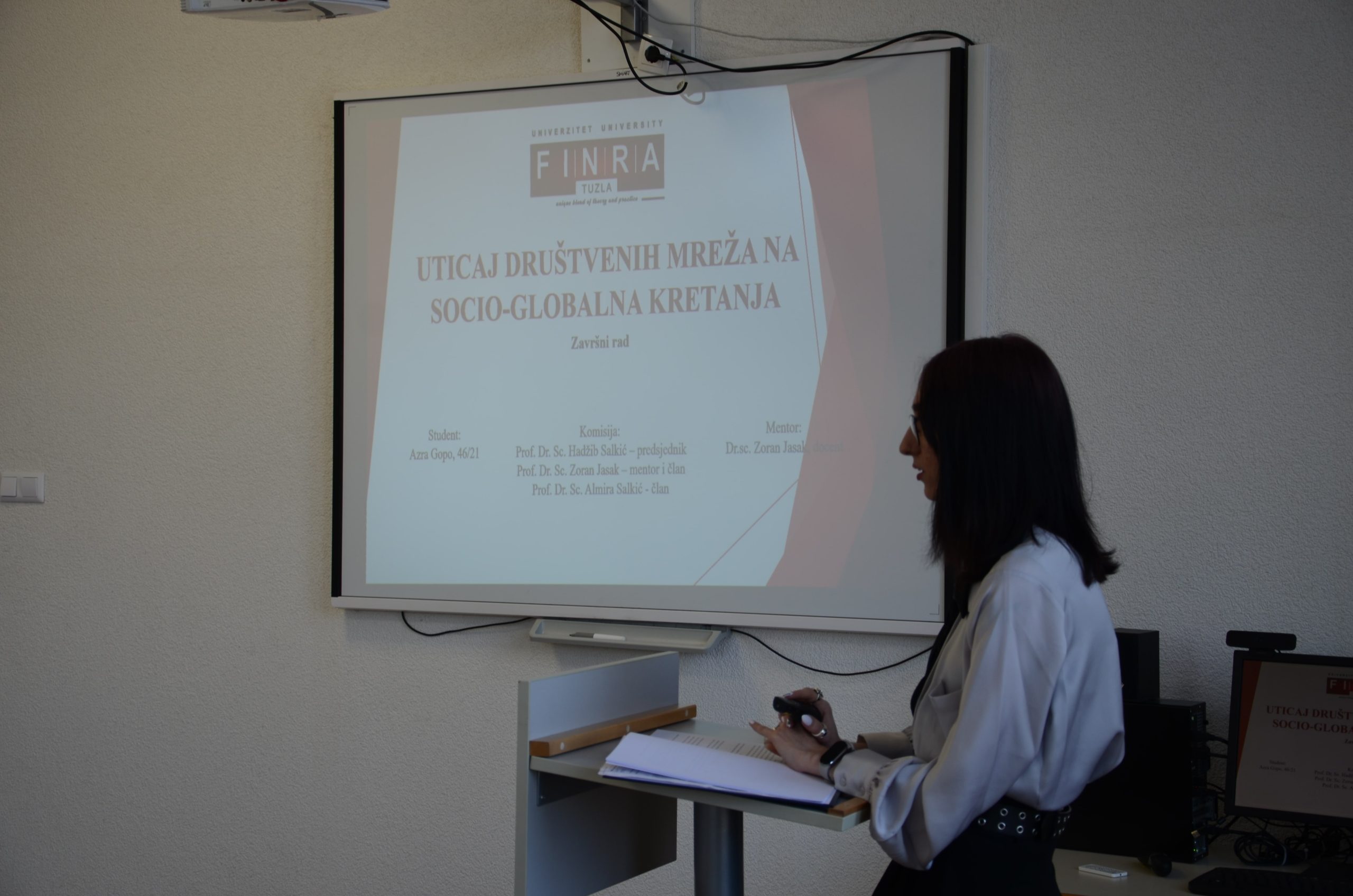Kandidatkinja Azra Gopo odbranila je završni rad na temu „Uticaj društvenih mreža na socio-globalna kretanja“ pod mentorstvom doc.dr. Zorana Jasaka.