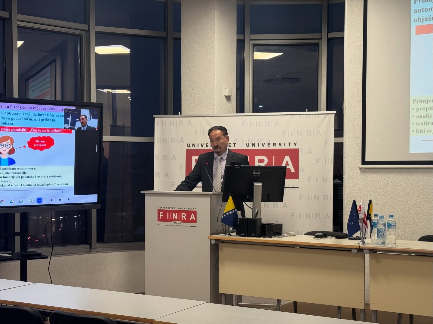 Prof.dr. Vinko Belak iz Zagreba, regionalno poznati stručnjak iz poslovne forenzike, je održao predavanje za studente magistarskog studija Forenzičko računovodstvo i revizija. Na prvim predavanjima približio je studentima najnovija dostignuća, znanja i vještine u oblasti poslovne forenzike, forenzičkog računovodstva i revizije, te finansijskih prevara u svijetu.