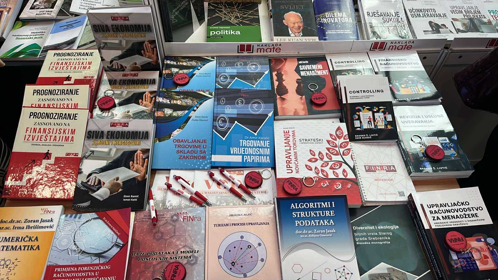 Na sajmu su predstavljena izdanja Univerziteta FINRA – ukupno 14 knjiga i udžbenika iz oblasti finansija, menadžmenta, računovodstva, revizije, računarstva, informatike, turizma i biologije.